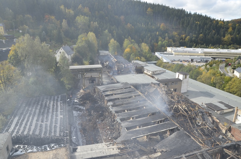 Brand des ehemaligen FORON Hausgerätewerkes 2012. Feuerwehrdrehleiter 30m.